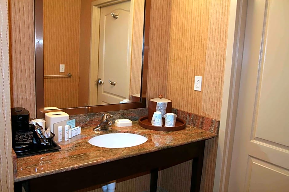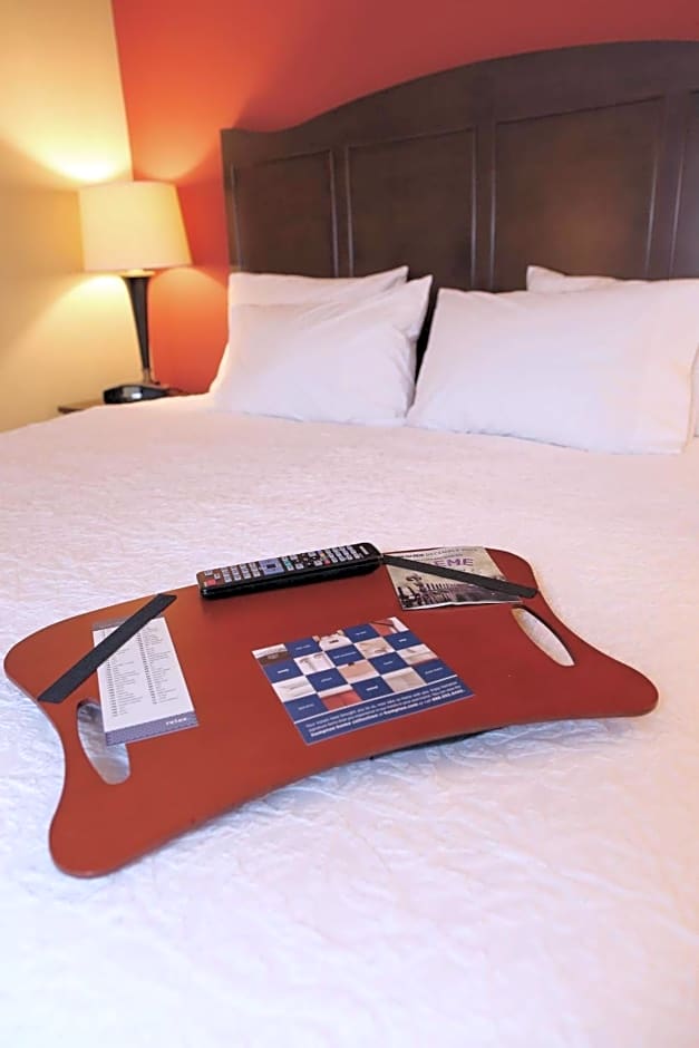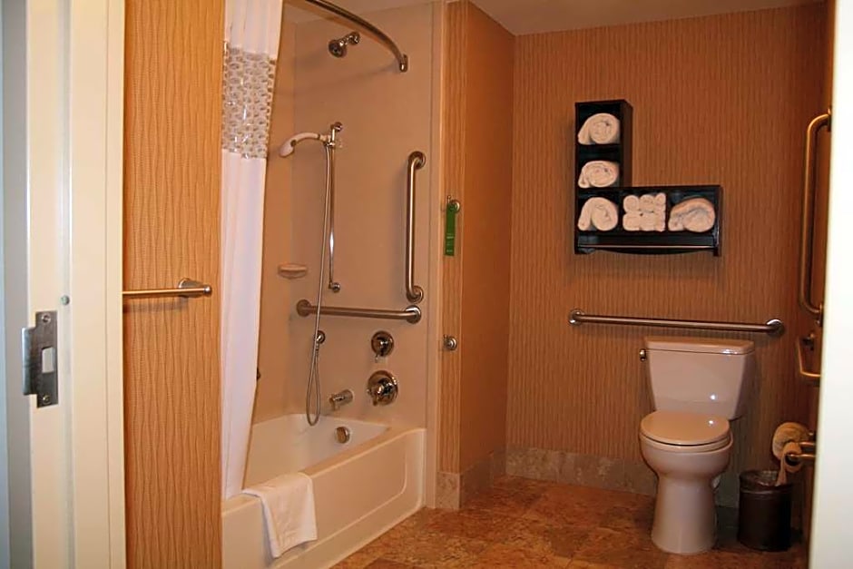 Any corresponding photo may not reflect the specific accessible room type or room feature. This hearing accessible, non-smoking room features one king-sized bed and a visual alarm and notification devices for the doorbell or door knock and incoming phone calls. The room features our luxurious clean and fresh Hampton bed, comfortable soft seating, microwave, refrigerator, a 40-inch HDTV and easy to operate alarm clock/radio. In the bath, you will enjoy a WaterPik shower head in the walk-in shower. The free WiFi will help you stay connected while on the road. If you prefer not to work at the desk, you can use the convenient lapdesk instead. You'll also enjoy the convenience of having a coffee maker with tea service and iron/ironing board in your room.
